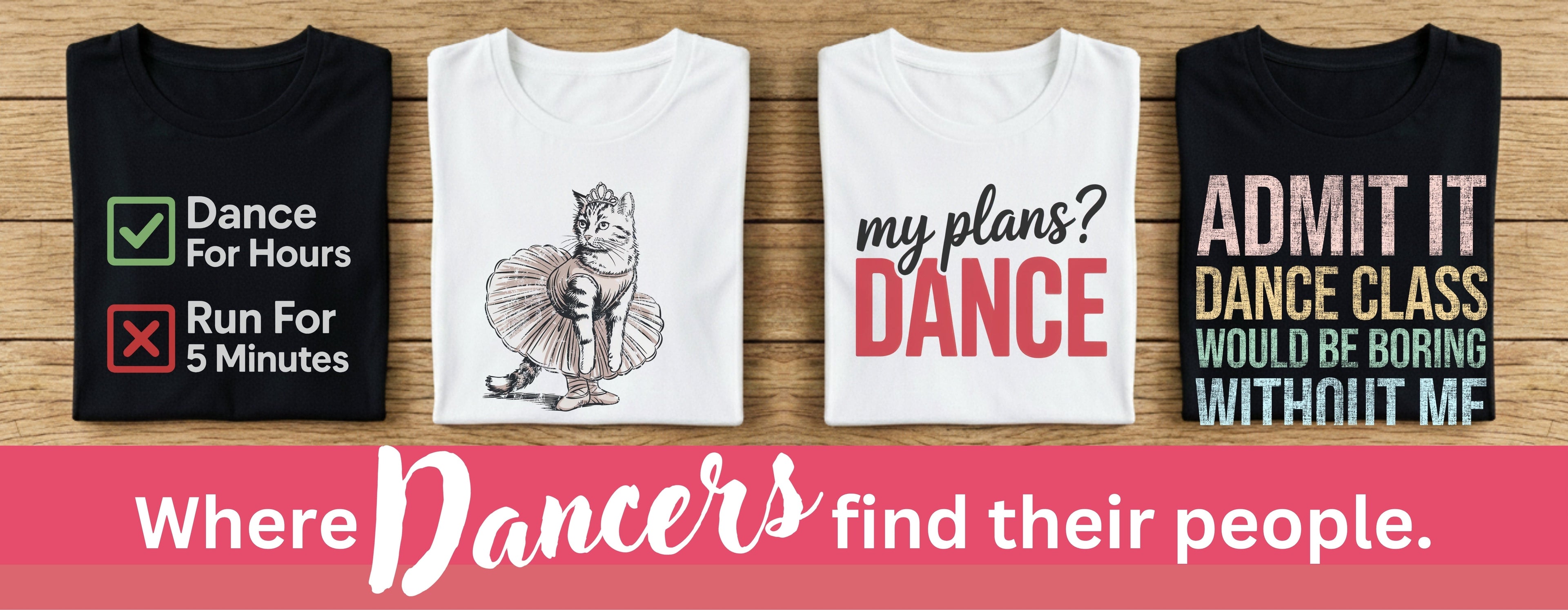 Ultra-comfy tees with crisp, professional printing that holds up through countless washes and long comp days. Thousands of dancers and dance teachers already wear Dance Thoughts - the designs bring the smiles, the quality brings them back.