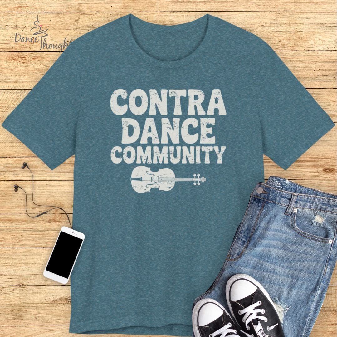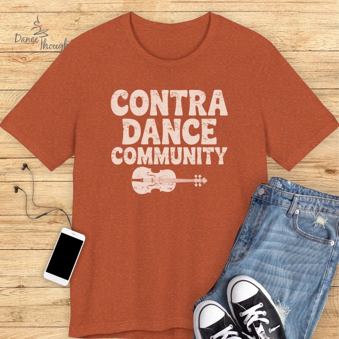 For dancers who value the music, movement, and friendships that keep contra alive. This design is a simple, folksy tribute to the joy of being part of the contra dance community.