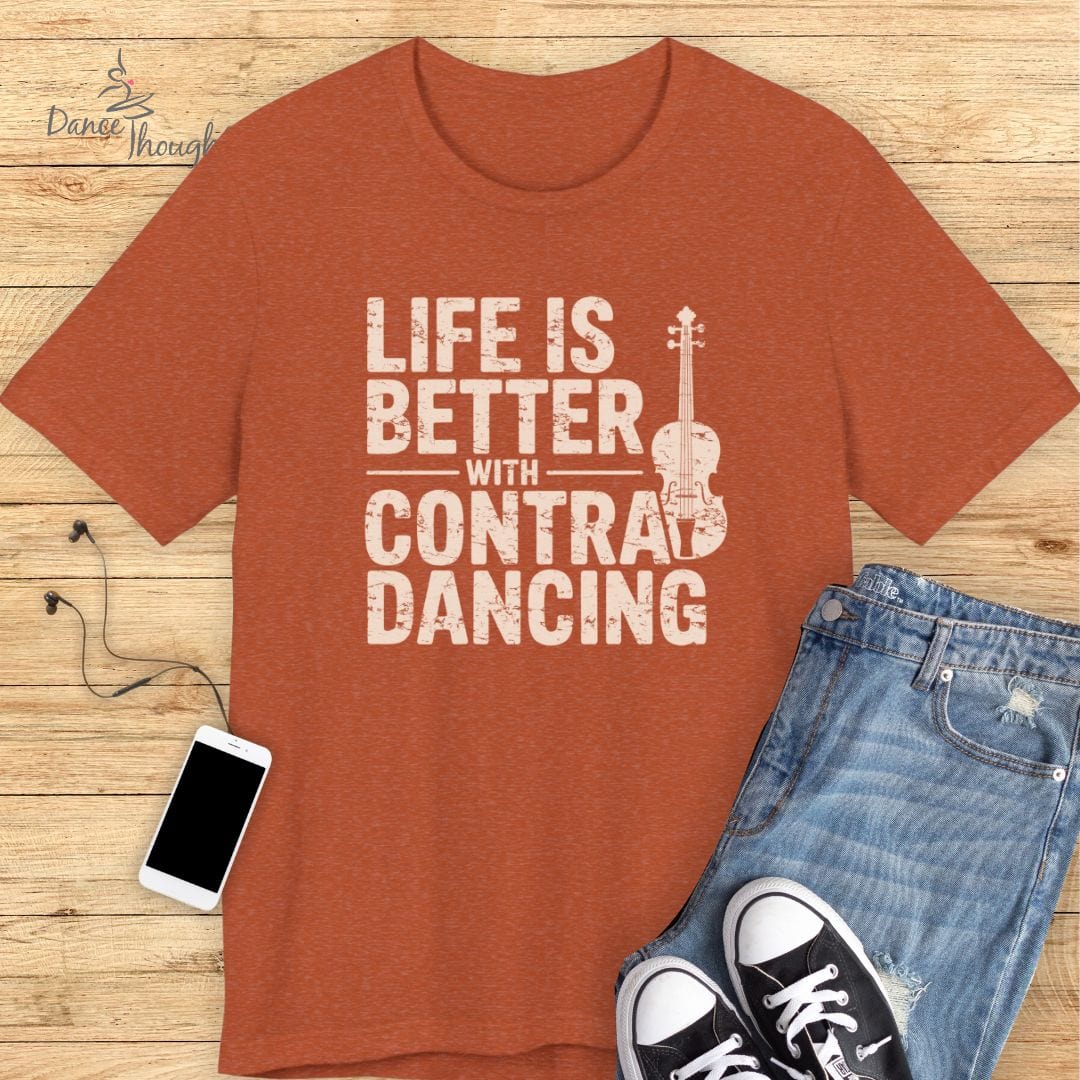 Celebrate the joy of reels, swings, and do-si-dos with this comfy tee made for contra dance lovers. A perfect gift for folk dancers, fiddlers, and anyone who knows that the best nights end with good music, great partners, and worn-out soles!