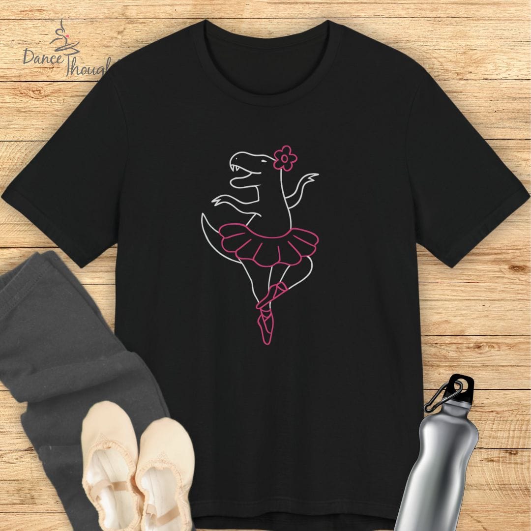 Meet your new studio favorite: a delightfully dino-mite tee featuring a T-Rex rocking a tutu, pointe shoes, and a flower accessory—all while striking a perfect ballet pose! Equal parts graceful and goofy, this playful design is made for dancers who love to laugh as much as they love to leap.