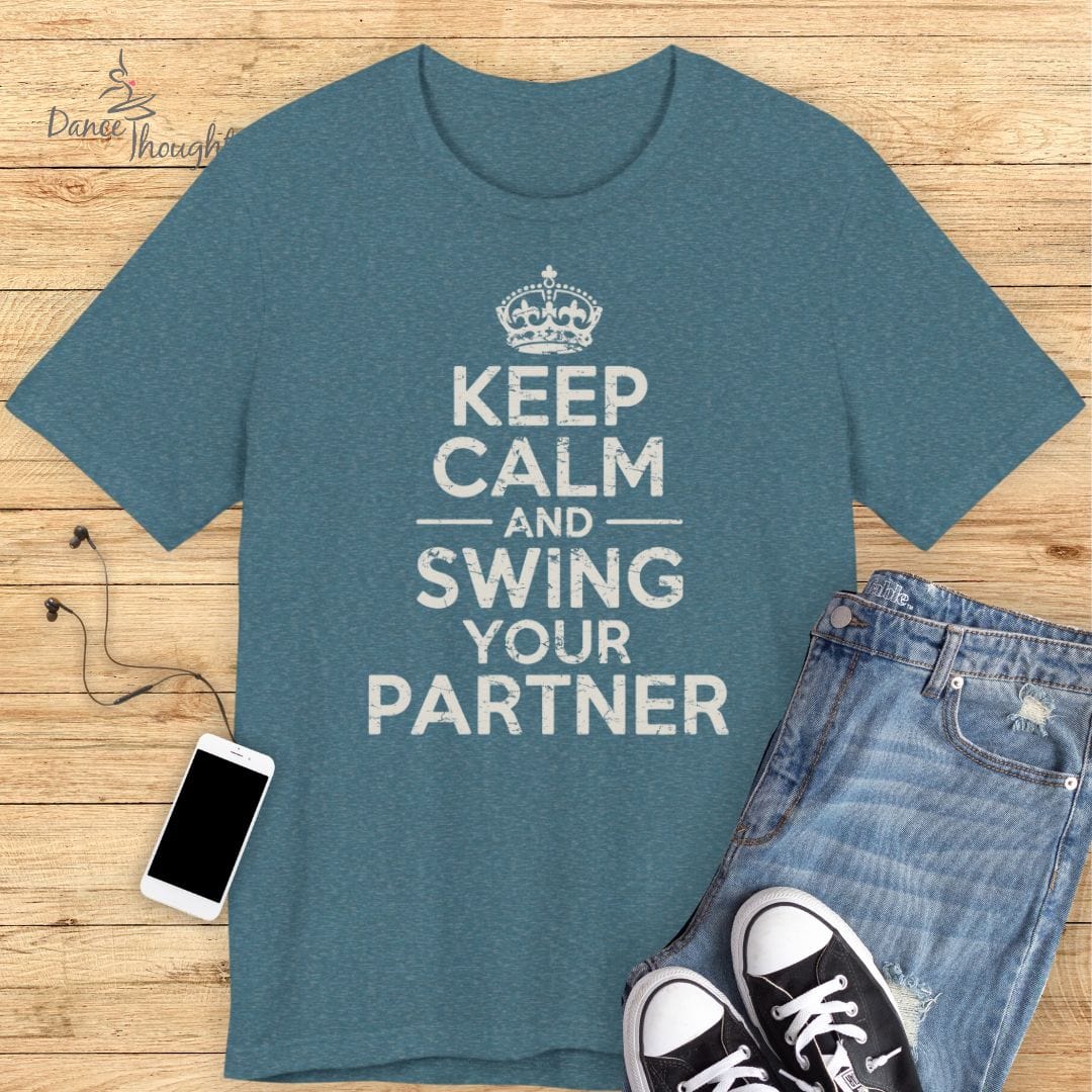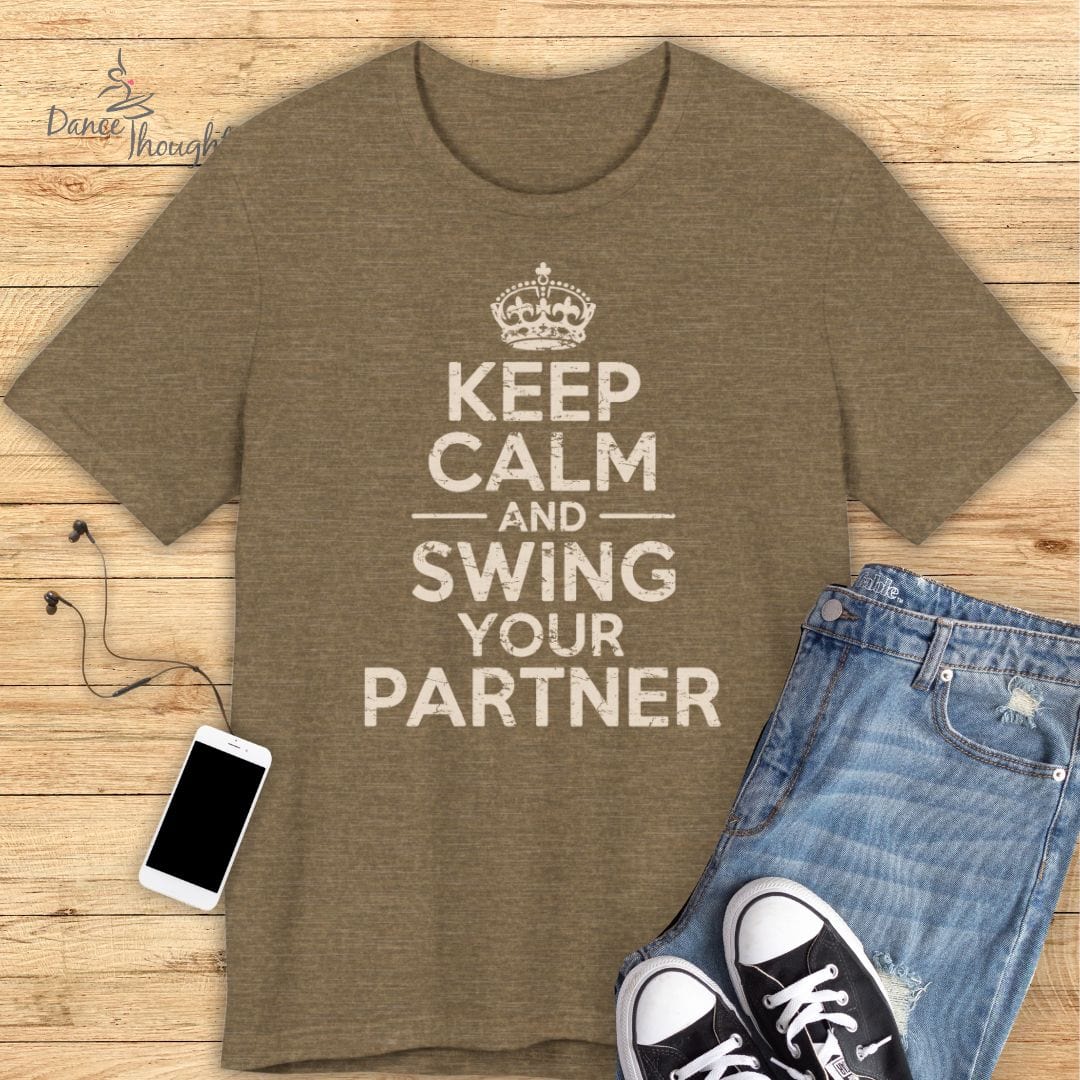 For dancers who know that every swing brings joy and calm to the floor. This design is a playful twist on a classic phrase, perfect for contra lovers.