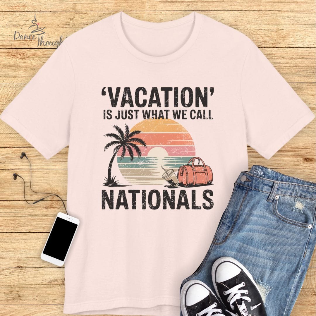 Who needs a beach when you’ve got a ballroom? This tee is for every dancer (and dance mom) who’s ever packed for “vacation” and ended up backstage with a duffel bag and a dream. Featuring retro postcard vibes with a cheeky twist, it’s the ultimate Nationals souvenir—no actual relaxation required.